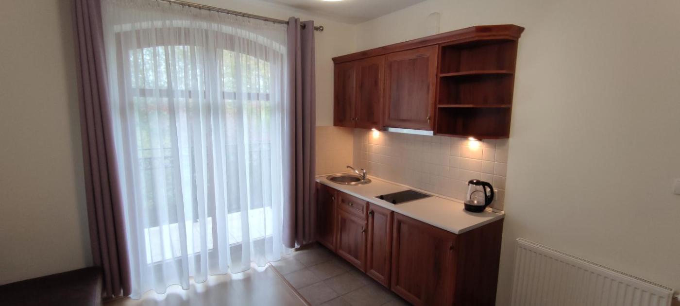 Apartament z 1 sypialnią. This apartment consists of 1 living room, 1 separate bedroom and 1 bathroom with a shower. Guests can make meals in the kitchenette that is equipped with a stovetop, a refrigerator, kitchenware and an electric kettle. Featuring a balcony with garden views, this apartment also provides a seating area and a flat-screen TV. The unit offers 2 beds. Apartament - 4 osobowy. Powierzchnia pokoju ok.: 30 mkw. ;