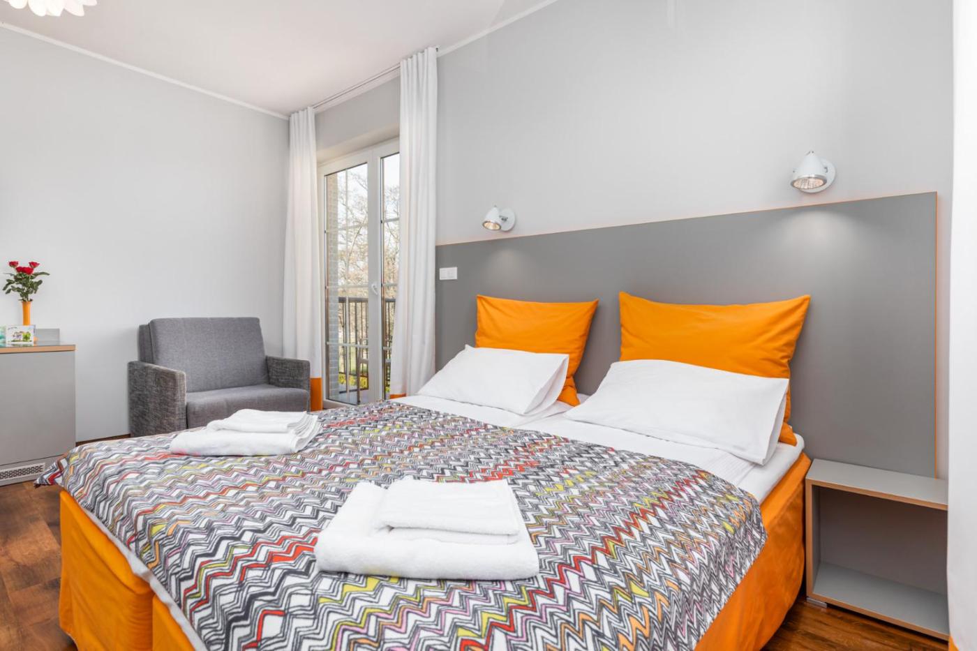 Pokój czteroosobowy typu Comfort. Offering free toiletries, this quadruple room includes a private bathroom with a shower and a hairdryer. Boasting a terrace, this quadruple room also offers a tea and coffee maker, a wardrobe and a flat-screen TV. The unit has 2 beds. Pokój Czteroosobowy - 4 osobowy. Powierzchnia pokoju ok.: 22 mkw.