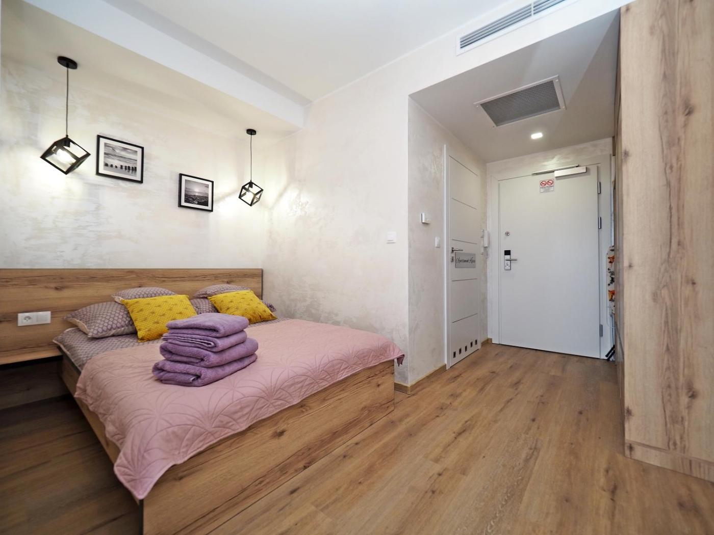 Apartament z 1 sypialnią. In the fully equipped kitchenette, guests will find a stovetop, a refrigerator, a dishwasher and kitchenware. The air-conditioned apartment offers a flat-screen TV with cable channels, a washing machine, a private entrance, a tea and coffee maker as well as ancourtyard view. The unit has 2 beds. Apartament - 4 osobowy. Powierzchnia pokoju ok.: 28 mkw.